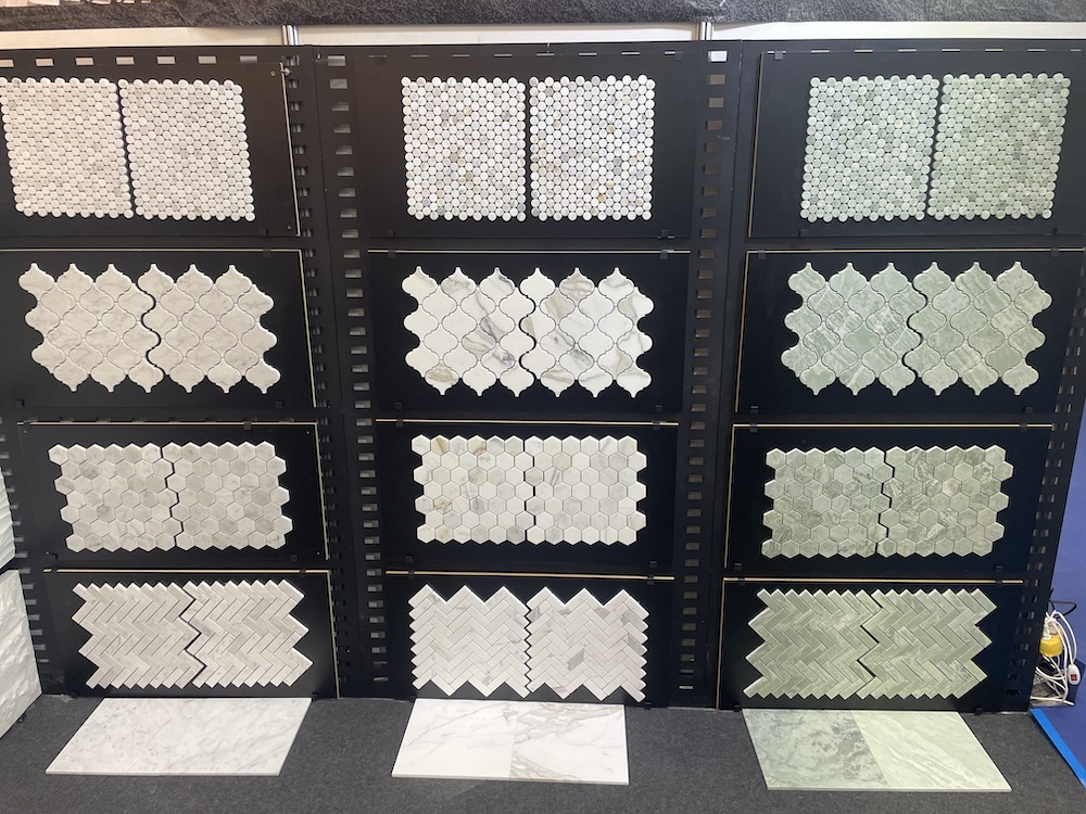 We are sharing Bianco Carrara, Calacatta Gold and Emerald Green marble tile and mosaic in Xiamen Stone Fair.